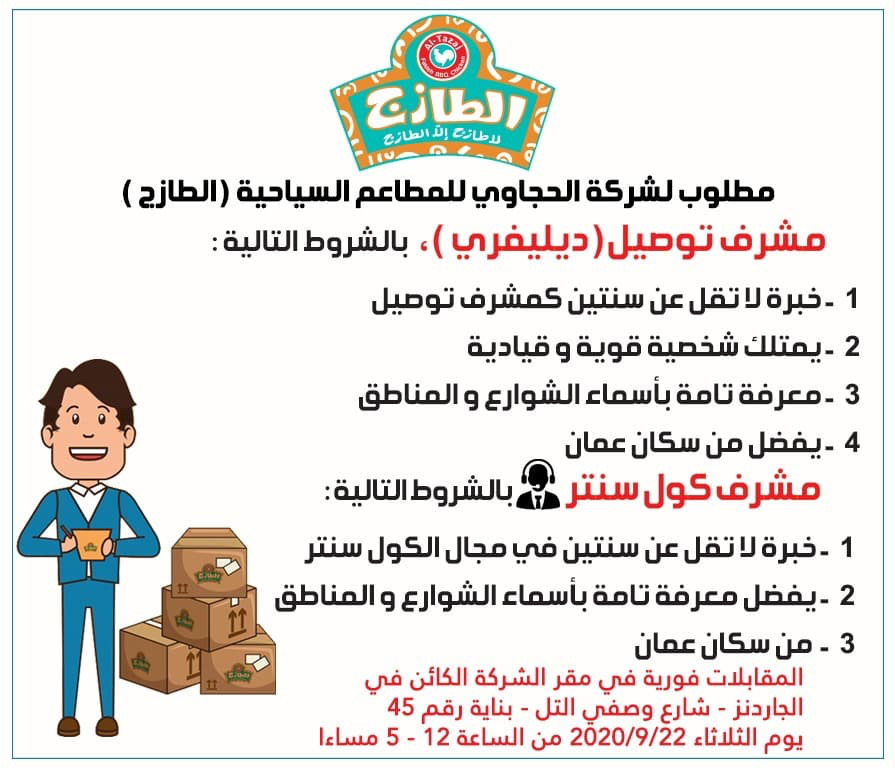 الرئيسية جميع الوظائف تعلن شركة الحجاوي للمطاعم السياحية ( الطازج ) بحاجة الى موظفين 18.9.20 (0) الأقسام جميع الوظائف محاسبة وادارة وظائف في الاردن تويتر واتساب بنترست لينكدين تمبلر لاين بريد أنسخ الرابط أخر المواضيع من قسم : جميع الوظائف تعليقات ليست هناك تعليقات إرسال تعليق