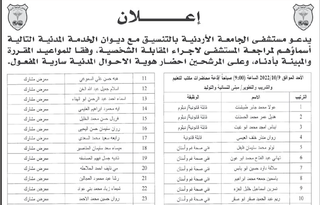 الرئيسية تعيينات حكومية دعوة مرشحين لاجراء المقابلات الشخصية لغايات التعيين في مستشفى الجامعة الاردنية 5.10.22 (0) الأقسام تعيينات حكومية جميع الوظائف وظائف في الاردن تويتر واتساب بنترست لينكدين تمبلر لاين بريد أنسخ الرابط أخر المواضيع من قسم : تعيينات حكومية تعليقات ليست هناك تعليقات إرسال تعليق