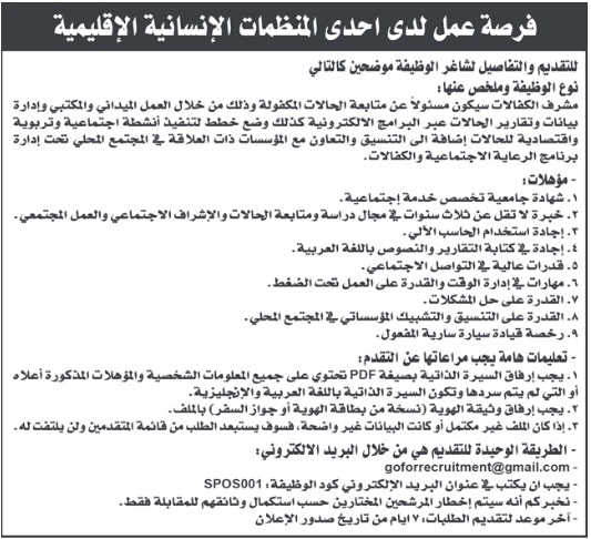 الرئيسية جميع الوظائف فرص عمل لدى احدى المنظمات الانسانية الاقليمية في الاردن 23.10.22 (0) التقديم من خلال الضغط على الصورة الأقسام جميع الوظائف محاسبة وادارة منظمات دولية وظائف في الاردن تويتر واتساب بنترست لينكدين تمبلر لاين بريد أنسخ الرابط أخر المواضيع من قسم : جميع الوظائف تعليقات ليست هناك تعليقات إرسال تعليق